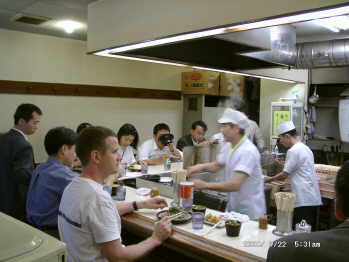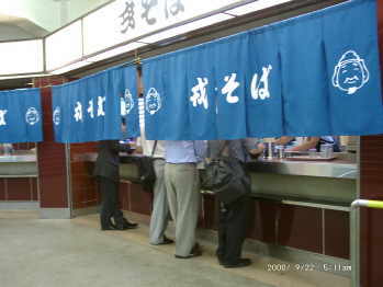 am Tresen eines Nudel-Standrestaurants),